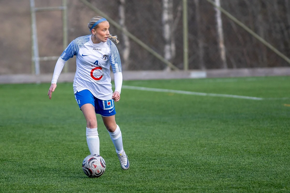 Häng med på snabbkurs i sportfoto och lär dig fota stilfulla fotbollsbilder som den här på IFK Timrå dam 2026. Foto: Anders Thorsell.
